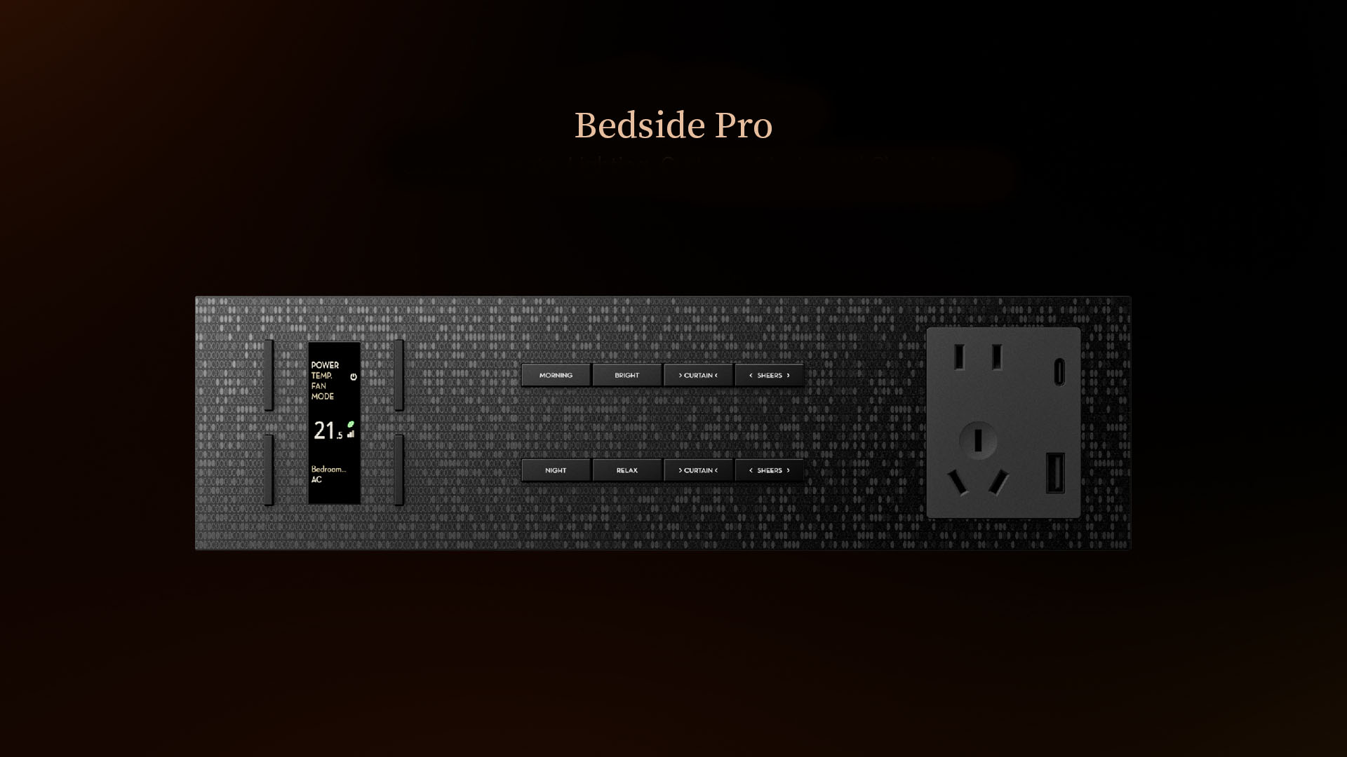 Bedside is a sleek, minimal basic bedside package that replaces the traditional 5-hole socket with two efficient Type-C ports. The combination of a screen and six buttons provides intuitive interaction while keeping a clean, balanced layout — delivering essential functionality in a simple, elegant design.