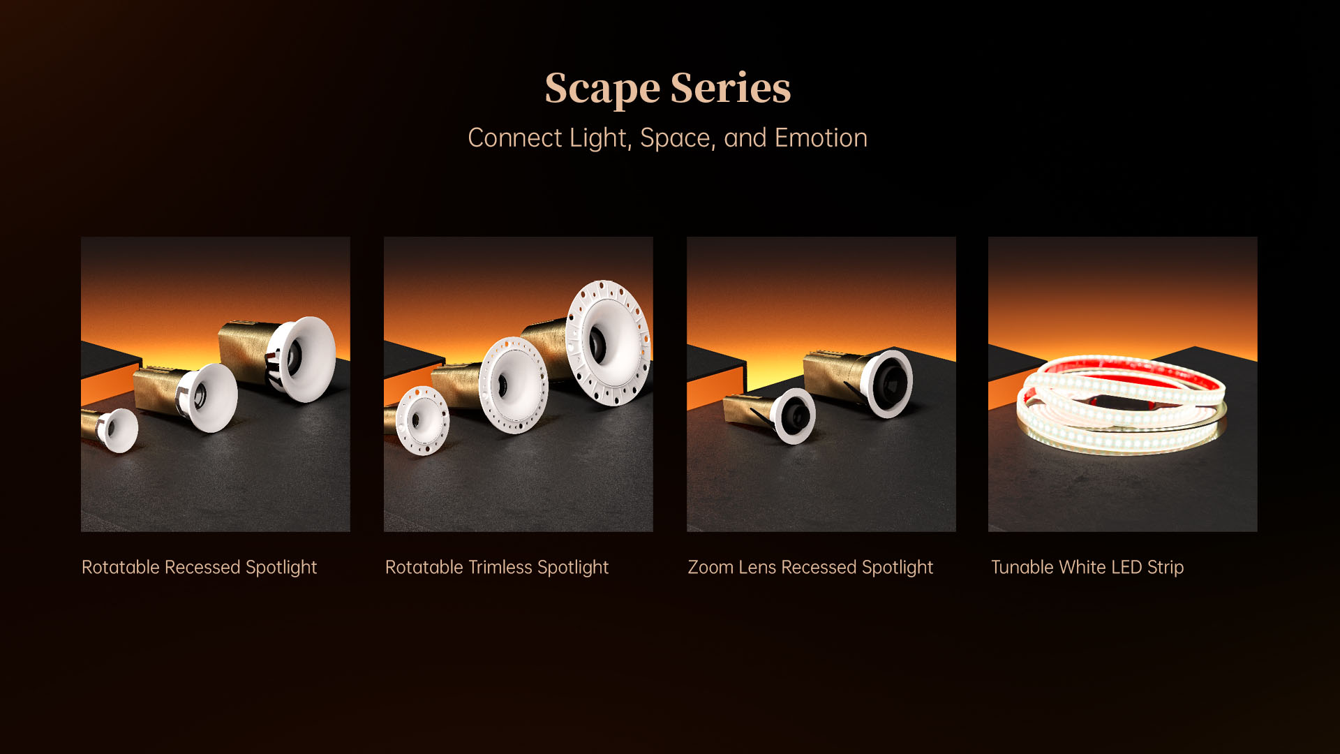 Performance and control are equally refined. With multiple options — Rotatable Recessed Spotlights, Rotatable Trimless Spotlights, Zoom Lens Recessed Spotlights, and Tunable White LED Strips — designers can choose the perfect solution for any space. With up to 18W power, aviation-grade aluminum housing, adjustable CCT strips (1800K–5000K), and IP68-rated protection, the Scape Series delivers versatile, durable lighting. Powered by CoTP™, dimming is seamless and flicker-free, allowing smooth, natural adjustments that feel like the space is breathing with light. The SUBLIME Scape Series brings intelligent, artistic lighting to life in any environment.